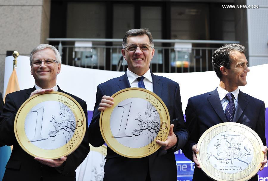 El primer ministro lituano Algirdas Butkeviciusda un discurso durante la ceremonia de anexión de Lituania al Euro celebrada en la sede de la UE en Bruselas, capital de Bélgica, el 23 de julio de 2014. El Euro empezará a circular en Lituania el 1 de enero de 2015 y ya serán 19 los países que conformen la eurozona, de los 28 de la Unión Europea.