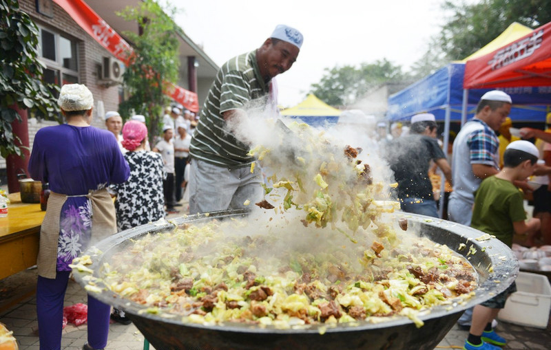Un musulmán chino cocina un banquete para celebrar la fiesta de Eid al-Fitr en una mezquita en la ciudad de Renqiu, provincia de Hebei, el 29 de julio de 2014.
