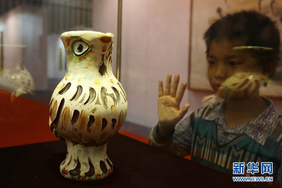 El 18 de agosto, un ni?o aprecia la obra de porcelana llamada “Buhó”. Agencia de Xinhua. (Foto: HanHua)