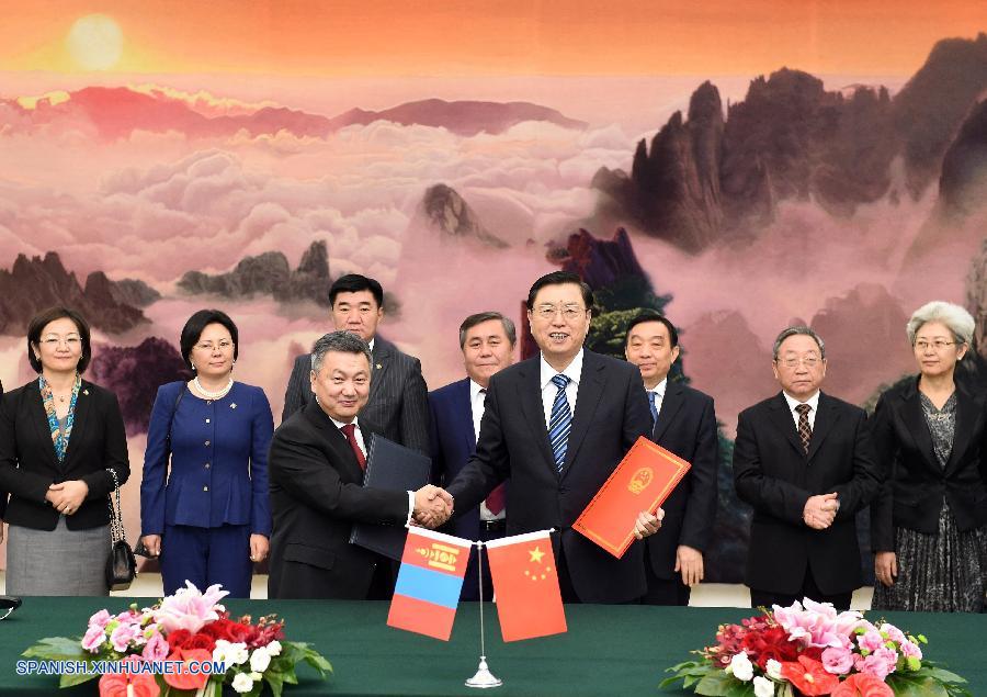BEIJING, 27 oct (Xinhua) -- El máximo legislador de China, Zhang Dejiang, sostuvo hoy conversaciones con su homólogo mongol Zandaakhuu Enkhbold en Beijing y ambos prometieron impulsar la cooperación legislativa entre los dos países.