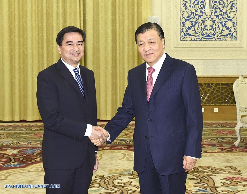 Liu Yunshan, miembro Comité Permanente del Buró Político del Comité Central del PCCh, se reunió en Beijing con Abhisit Vejjajiva, ex primer ministro de Tailandia.