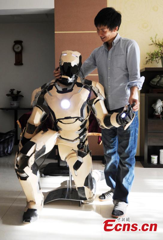 Zu Bingqun posa junto a uno de los trajes de sus personajes favoritos, en Changchun, el 30 de noviembre de 2014.