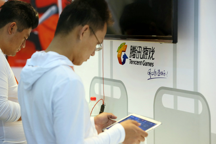 Visitantes prueban los nuevos juegos de Tencent. [Foto: PPC]