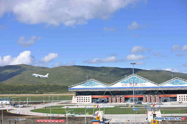 Un avión despega desde el aeropuerto de Hongyuan, en el condado Hongyuan de la prefectura Aba, provincia de Sichuan, el 28 de agosto de 2014. El aeropuerto de Hongyuan, a una altitud de 3.535 metros, se encuentra en funcionamiento desde ese mismo día. [Foto/Xinhua]
