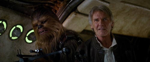 En los últimos instantes del montaje, el actor Harrison Ford reaparece caracterizado como Han Solo y acompa?ado del personaje de Chewbacca, al que se le escucha decirle que han regresado a su hogar.