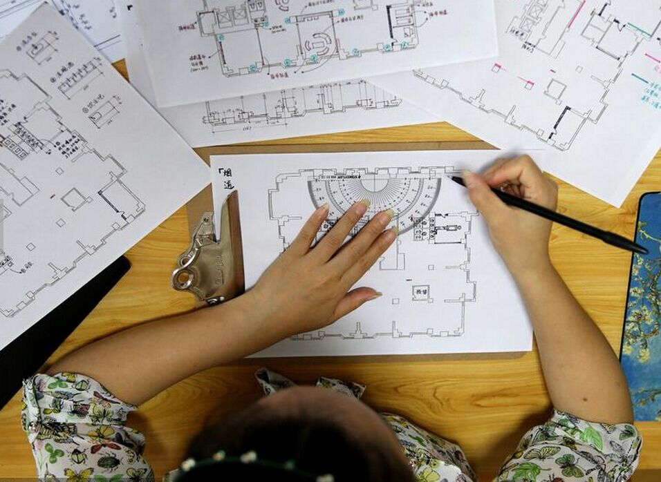 Wang Rong dibuja un proyecto en su oficina en Xi'an, provincia de Shaanxi.