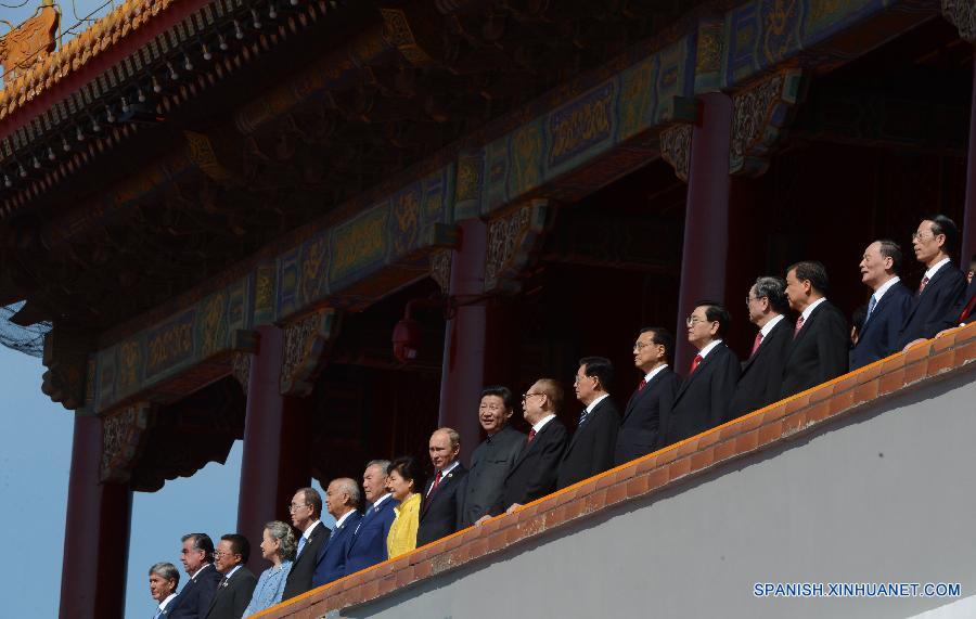 A Xi se le unieron docenas de jefes de Estado y gobierno, así como de organizaciones internacionales como el secretario general de la ONU, Ban Ki-moon, el presidente de Rusia, Vladimir Putin, y la presidenta de la República de Corea, Park Geun-hye.