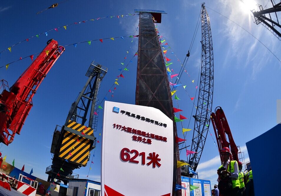 La Torre de 117 pisos tiene una se?alización que dice: "La bomba que se utiliza en la construcción de esta torre puede elevar el concreto m'as allá de los 621 metros, la cifra más alta del mundo".