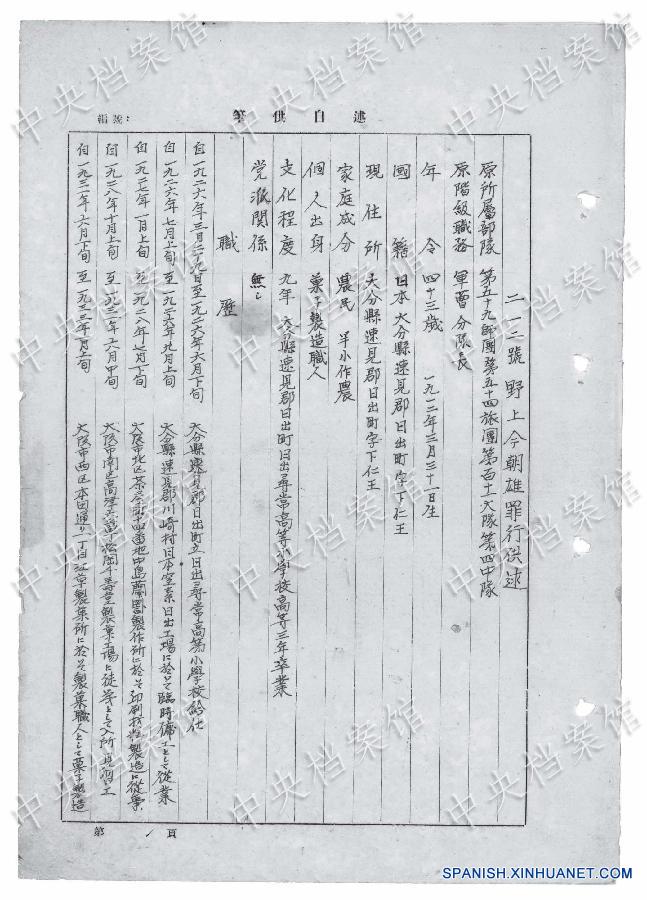 En Beijing, entre enero de 1941 y febrero de 1944, Nogami violó a cinco mujeres chinas en ocho ocasiones y a dos mujeres coreanas en 10 ocasiones, confesó.