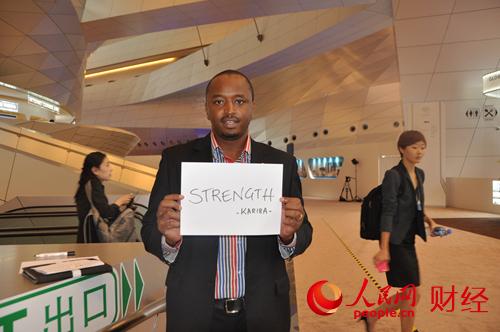 Kariba Moko, socio de capital de MOAD viene de Kenia. Usó la palabra "strength” (fuerza)" para describir su confianza en la economía china. Dijo: "Creo que la economía china mantendrá un buen crecimiento y seguirá contribuyendo a la economía mundial. China podrá asumir esta responsabilidad sin duda alguna." También dijo que en esta ocasión ha visitado varias ciudades chinas y los niveles altos de infraestructura e industrialización de China le han hecho cambiar de idea sobre China. El pueblo chino está ansioso por seguir un mejor desarrollo. Este deseo supone un gran poder, por lo que utilizo la palabra "fuerza".