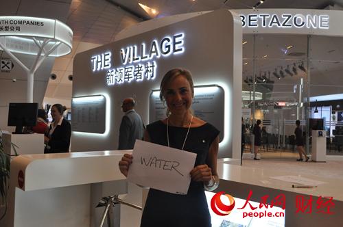 Sra. Mina Guli es presidenta ejecutiva de Thirst4water, una organización sin ánimo de lucro para la protección de los recursos hídricos. Dijo que estaba impresionada por las reformas chinas. China tiene muchas oportunidades económicas y seguirá creciendo. El agua es un tema importante para la economía china, y China como en todo el mundo necesita una gran cantidad de agua. China tiene que prestar más atención a la protección de los recursos hídricos en su trayectoria de desarrollo económico ya que el mundo está conectado estrechamente con China. Por lo tanto, escribió la palabra "water” (agua), que es exactamente el trabajo al que se dedica.