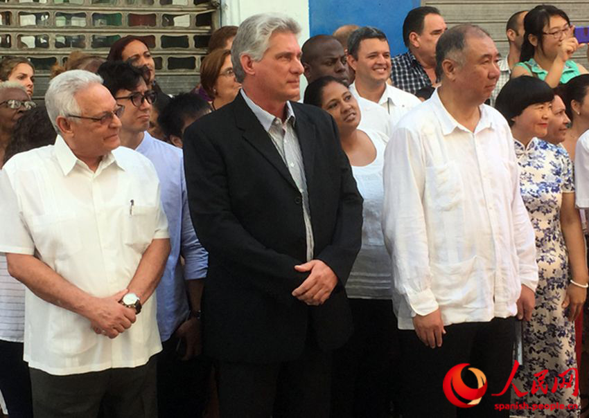 Con la presencia de Miguel Díaz-Canel, primer vicepresidente del Consejo de Estado y de Ministros de Cuba (centro), Dr. Rodolfo Alarcón, ministro de Educación Superior (izquierda), Zhang Tuo, embajador de China en Cuba (derecha) se inauguró la nueva sede del Instituto Confucio de La Habana. (Foto: YAC)