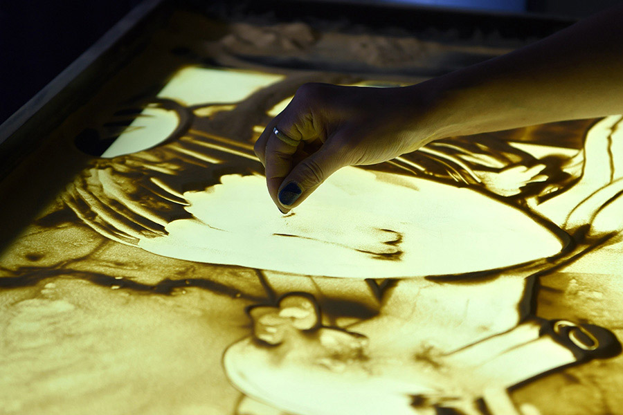 El pabellón creado por Guo y su maestro abrió sus puertas el 1 de agosto de 2015. Después de dos meses, inauguraron la exhibición "Conocer Beihai", mostrando el paisaje y la cultura de Beihai a través de la pintura con arena. [Foto/Xinhua]