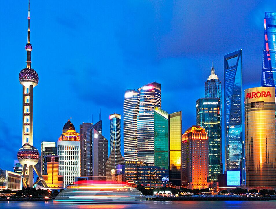 Río Huangpu, en el distrito financiero de Lujiazui. La Perla (más alto a la izquierda), La Torre de Shanghai (más alta a la derecha), el Shanghai World Financial Center (segundo más alto a la derecha) y otros rascacielos y edificios altos en Pudong, Shanghai.