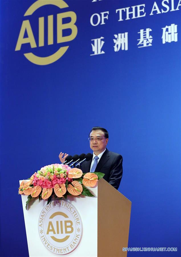 El primer ministro chino, Li Keqiang,habla durante la reunión inaugural de la junta de gobernadores del Banco Asiático de Inversión en Infraestructura (BAII) en Beijing, capital de China, 16 de enero de 2016. (Xinhua / Liu Weibing)