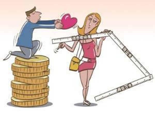 Según los datos de diversas regiones, los hombres del sur de China y las mujeres del norte tienen requisitos más altos en cuanto al salario de una pareja ideal se refiere. Entre los de diversos requisitos, muchas parejas solo mantendrían una relación con alguien que tuviese ya una vivienda.