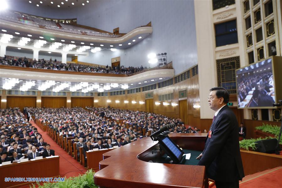 El máximo legislador de China, Zhang Dejiang, pronuncia el informe de trabajo anual de la APN en Beijing, capital de China, el 9 de marzo de 2016. (Xinhua/Yao Dawei)
