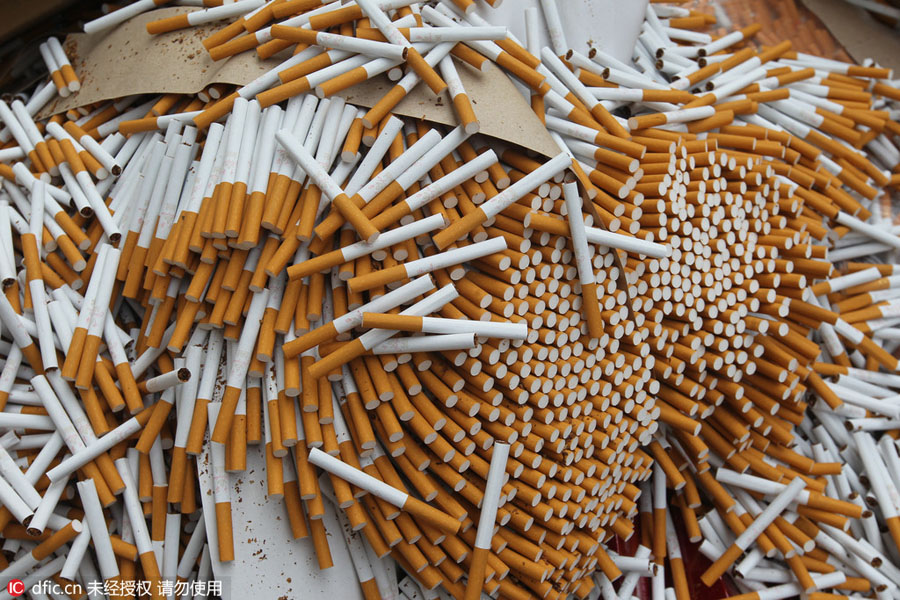 Cigarros falsificados y de mala calidad listos para ser quemados con el objetivo de generar electricidad en una planta de Xuchang, Henan.