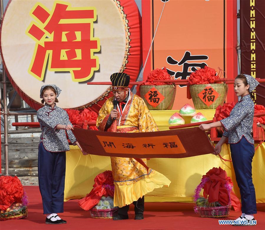 El pueblo asiste a una bendición ritual para la abundante pesca y la buena suerte de los pescadores que salen hacia alta mar en Jiegou, Panjin, provincia de Liaoning, 15 de marzo de 2016. En Jiegou, el río de la zona desemboca en el mar. Durante la ceremonia los pescadores rezan y piden protección antes de comenzar a navegar. (Foto: Li Gang)