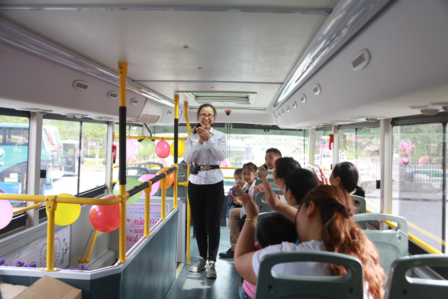 Una conductora de autobús da la bienvenida a las madres a bordo de la ruta 60 en Zhengzhou, provincia de Henan, el 7 de mayo del 2016. Más de 10 familias se unieron a la actividad donde los ni?os abrazaron a sus madres y les dijeron: "Gracias." [Foto: VCG]