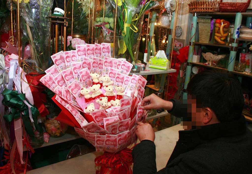 Una floristería en Yangzhou recibió un pedido especial: un cliente pidió elaborar un ramo hecho con 100 billetes de 100 yuanes para una propuesta de matrimonio. Teniendo en cuenta la ley competente, el propietario negó varias veces la petición. Al final, por la insistencia del cliente, se utilizó un sistema de pegar sin da?ar los billetes para realizar el ramo según los requisitos del cliente.