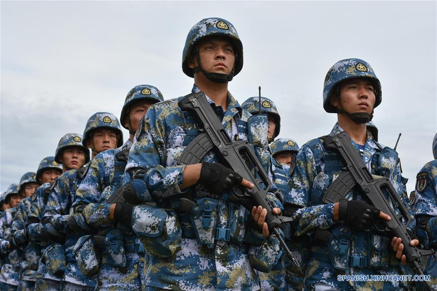 SATTAHIP, mayo 21, 2016 (Xinhua) -- Infantes de marina chinos participan en una ceremonia de apertura para un ejercicio militar conjunto, en la Base Naval de Sattahip, provincia de Chon Buri, Tailandia, el 21 de mayo de 2016. Los cuerpos de Marina chinos y tailandeses llevaron a cabo el sábado una ceremonia de apertura de un ejercicio militar conjunto con nombre en código "Blue Strike 2016". (Xinhua/Li Mangmang)