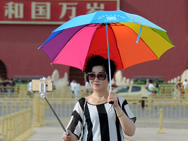 Una turista se hace una foto en Pekín, el 6 de mayo de 2016.