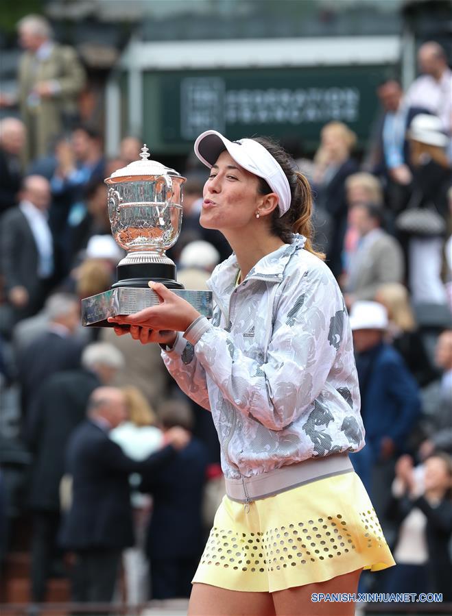 Muguruza se convierte así en la segunda tenista espa?ola en ganar este torneo, tras Arancha Sánchez-Vicario.(Xinhua/Ye Pingfan)
