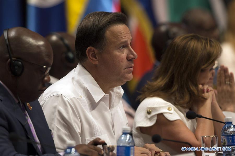 El presidente de Panamá, Juan Carlos Varela (c), participa durante la VII Cumbre de la Asociación de Estados del Caribe (AEC), en La Habana, Cuba, el 4 de junio de 2016. Presidentes de los países miembros de la AEC ratificaron el sábado el compromiso de buscar acciones concretas comunes para afrontar el cambio climático que amenaza la existencia misma de algunas naciones del área. (Xinhua/Ismael Francisco/Cubadebate)