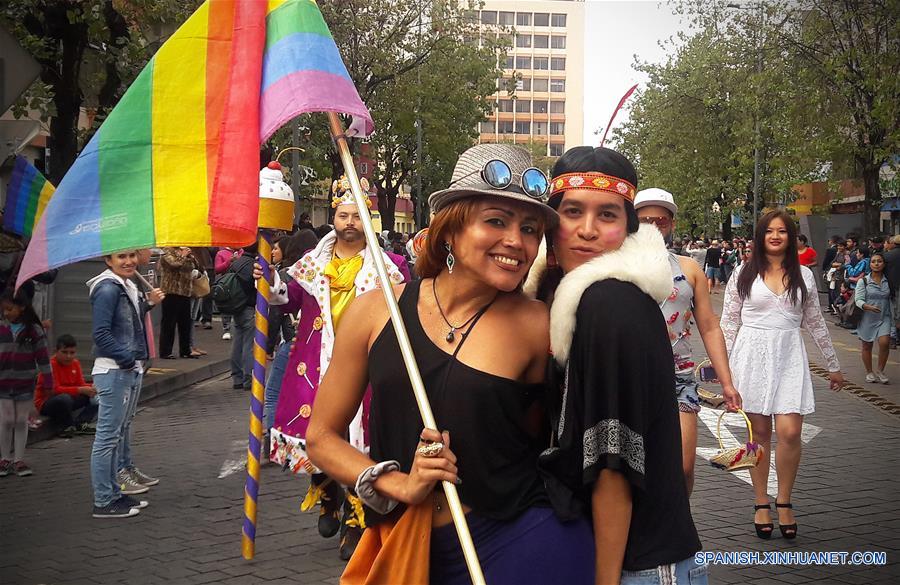 Personas participan durante una marcha de la comunidad Lésbico, Gay, Bisexual, Transexual e Intersexual (LGBTI), en el marco de la celebración del Día Internacional del Orgullo LGBTI, en Quito, Ecuador, el 2 de julio de 2016. De acuerdo con información de la prensa local, personas de todas las edades participaron en la marcha con el lema: "Somos diversidad, somos amistad", en apoyo a la igualdad social y de derechos de esta comunidad. (Xinhua/Santiago Armas)