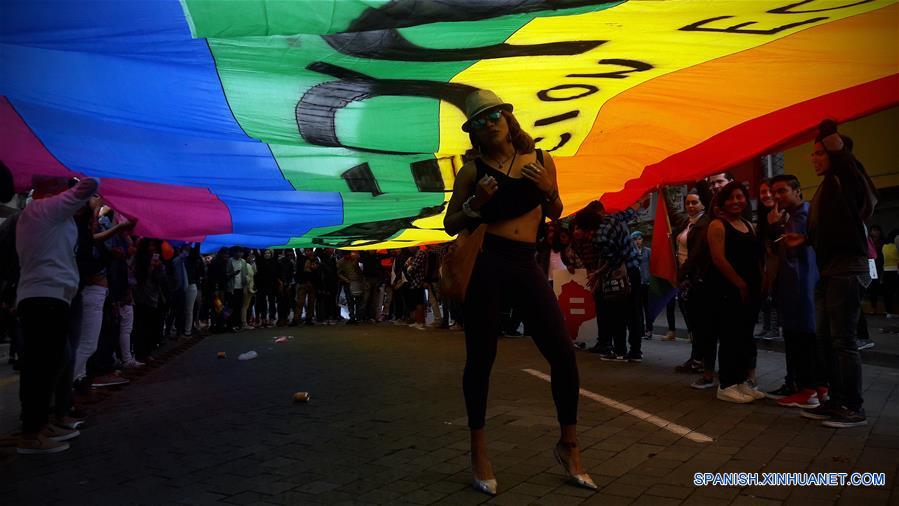 Personas participan durante una marcha de la comunidad Lésbico, Gay, Bisexual, Transexual e Intersexual (LGBTI), en el marco de la celebración del Día Internacional del Orgullo LGBTI, en Quito, Ecuador, el 2 de julio de 2016. De acuerdo con información de la prensa local, personas de todas las edades participaron en la marcha con el lema: "Somos diversidad, somos amistad", en apoyo a la igualdad social y de derechos de esta comunidad. (Xinhua/Santiago Armas)