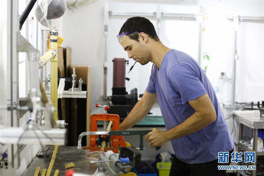 David Wang muestra cómo se fabrica una bicicleta de bambú en su estudio. [Foto: Xinhua]