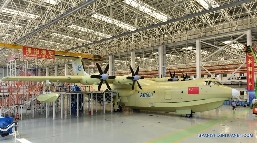 La aeronave que tiene un peso máximo de despegue de 53.5 toneladas y un rango de vuelo máximo de 4,500 km, será utilizado para combatir incendios forestales y realizar misiones de rescate marino. El AG600 es por mucho la aeronave anfibia más grande del mundo, cerca del tama?o de un BOeing 737. (Xinhua/Liang Xu)