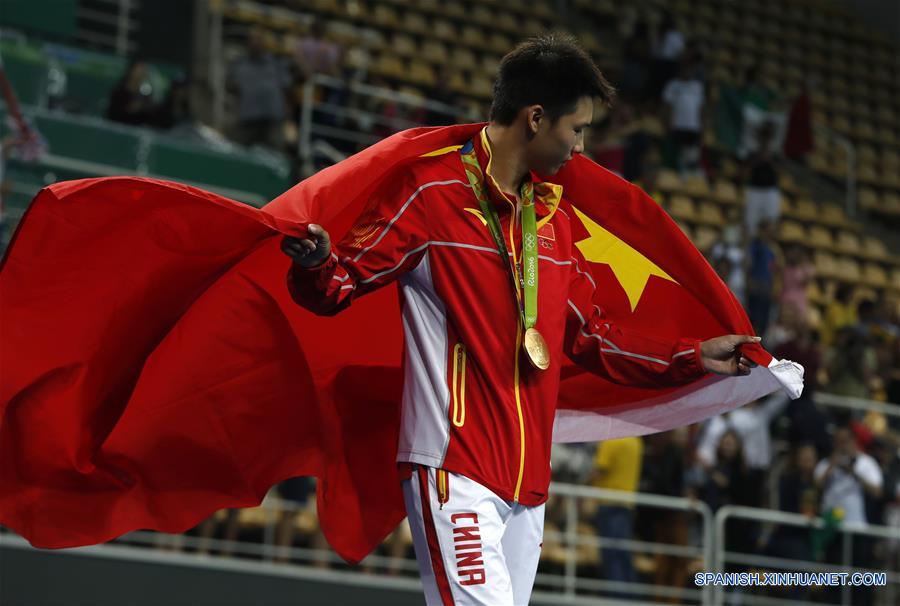 Chen Aisen, de China, obtuvo hoy su segunda medalla de oro en los Juegos Olímpicos Río 2016 al ganar la competencia de clavados en plataforma de 10m masculino.(Xinhua/Ding Xu)