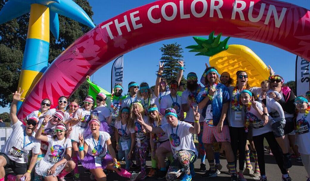 La gente posa para las cámaras antes de la Carrera de Colores en Sydney, Australia, el 21 de agosto de 2016. La Carrera de Colores, conocida como "los 5km más felices del planeta", se celebró en Sydney el domingo. Es un evento único que pretende concienciar sobre la salud y la felicidad. En el evento, los participantes terminan cubiertos de una mezcla de polvos de colores hechos de almidón de maíz. (Xinhua/Zhu Hongye)