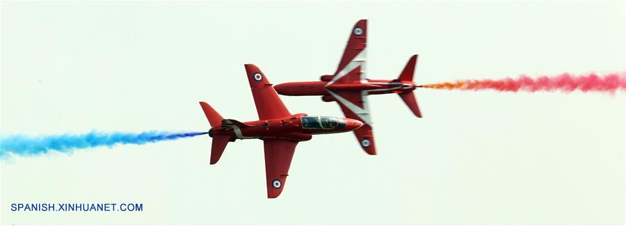 ZHUHAI, noviembre 3, 2016 (Xinhua) -- Red Arrows, equipo acrobático de la Real Fuerza Aérea británica participan en la XI Exhibición Internacional de Aviación y Aeroespacial de China, en Zhuhai, provincia de Guangdong, en el sur de China, el 2 de noviembre de 2016. (Xinhua/Cai Yang)