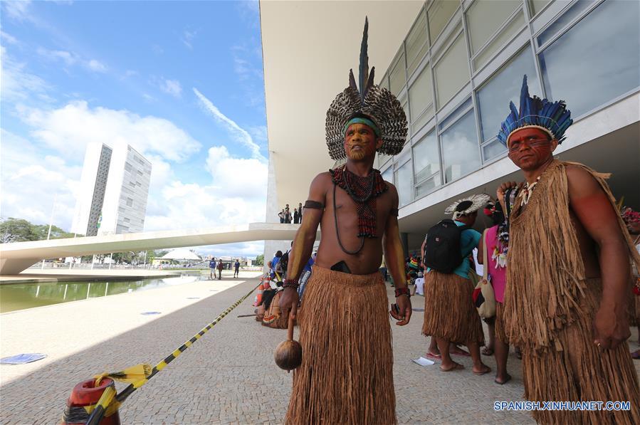 Indígenas pertenecientes a diversas etnias acudieron a la entrada principal del Palacio de Planalto en demanda de más recursos para el Instituto Nacional de Colonización y Reforma Agraria (Incra), la Fundación Nacional del Indio (Funai) y el Secretario del Patrimonio de la Unión (SPU).