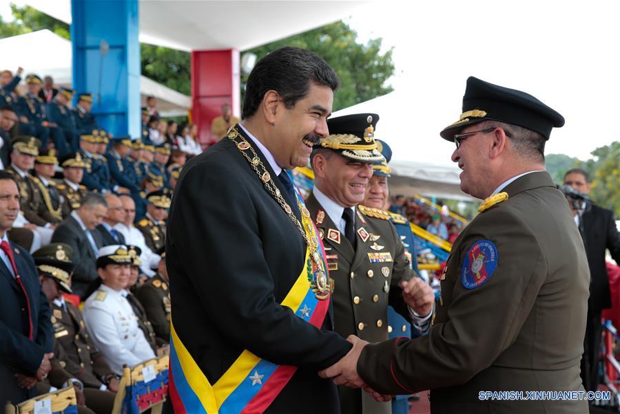 ARAGUA, noviembre 27, 2016 (Xinhua) -- El presidente venezolano, Nicolás Maduro (i), participa en un acto con motivo del 96 aniversario de la Aviación Militar Bolivariana, en Maracay, en el estado Aragua, Venezuela, el 27 de noviembre de 2016. El presidente de Venezuela, Nicolás Maduro, aseguró el domingo que no permitirá que "nadie", refiriéndose al sector opositor, se levante de la mesa de diálogo instalada el pasado 30 de octubre para buscar una solución a la crisis del país. (Xinhua/Prensa Presidencial/AVN)