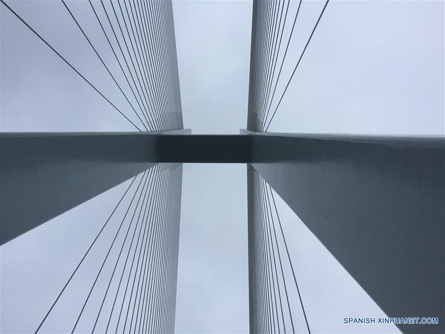 YUNNAN, diciembre 29, 2016 (Xinhua) -- Vista del Puente Beipanjiang que une al municipio de Duge de la ciudad de Liupanshui en la provincia de Guizhou, en el suroeste de China y el municipio de Puli de la ciudad de Xuanwei de la provincia de Yunnan, en el suroeste de China, el 29 de diciembre de 2016. El Puente Beipanjiang de 1,341.4 metros de longitud fue puesto el jueves en operación. (Xinhua/Pu Chao)