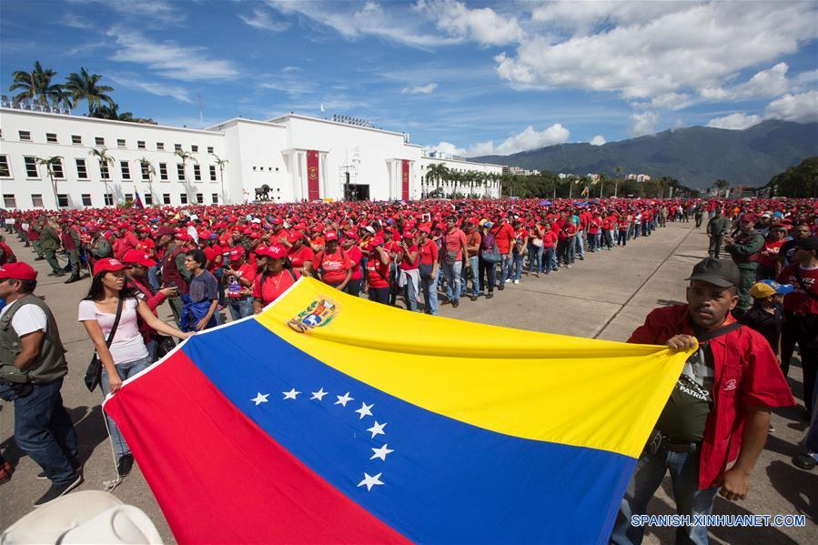 Simpatizantes del presidente venezolano, Nicolas Maduro, participan en el Ejercicio de Acción Integral Antiimperialista Zamora 200, en Caracas, capital de Venezuela, el 14 de enero de 2017. Este fin de semana se lleva a cabo el Ejercicio de Acción Integral Antiimperialista Zamora 200, en el que participarán más de 100,000 hombres y mujeres de los cuatro componentes de la Fuerza Armada Nacional Bolivariana (FANB) del país, informó el segundo comandante del Comando Estratégico Operacional (CEO), de la FANB, Remigio Ceballos, explicando que esta acción cívico-militar tiene su proceso de planificación desde el 28 de diciembre de 2016, por instrucciones del presidente venezolano, Nicolás Maduro, y su objetivo estratégico es preparar al pueblo en la defensa integral del país, de acuerdo con información de la prensa local. (Xinhua/Str)