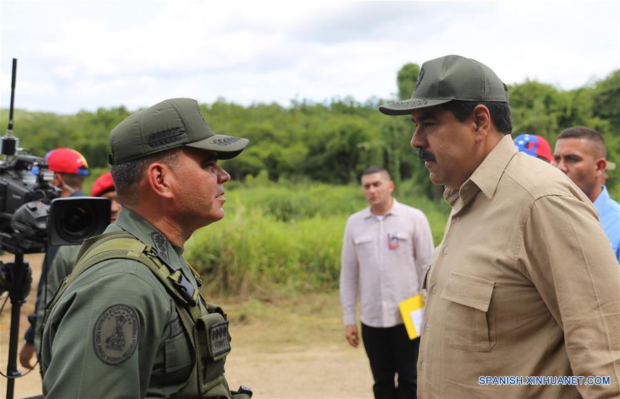 Imagen cedida por la Presidencia de Venezuela del presidente venezolano, Nicolás Maduro (d), asistiendo al Ejercicio de Acción Integral Antiimperialista Zamora 200, en las instalaciones del Fuerte Guaicaipuro, en el estado Miranda, Venezuela, el 14 de enero de 2017. Este fin de semana se lleva a cabo el Ejercicio de Acción Integral Antiimperialista Zamora 200, en el que participarán más de 100,000 hombres y mujeres de los cuatro componentes de la Fuerza Armada Nacional Bolivariana (FANB) del país, informó el segundo comandante del Comando Estratégico Operacional (CEO), de la FANB, Remigio Ceballos, explicando que esta acción cívico-militar tiene su proceso de planificación desde el 28 de diciembre de 2016, por instrucciones del presidente venezolano, Nicolás Maduro, y su objetivo estratégico es preparar al pueblo en la defensa integral del país, de acuerdo con información de la prensa local. (Xinhua/Presidencia de Venezuela)