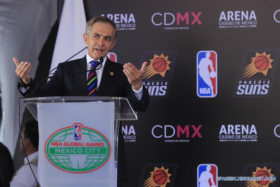 El jefe de Gobierno de la Ciudad de México, Miguel Angel Mancera, pronuncia un discurso durante la inauguración de cuatro canchas de baloncesto rehabilitadas en Ciudad Deportiva de Magdalena Mixhuca en la Ciudad de México, capital de México, el 14 de enero de 2017. De acuerdo con información de la prensa local, las canchas fueron rehabilitadas con apoyo del programa de la Asociación Nacional de Baloncesto (NBA, por sus siglas en inglés) estadounidense, NBA Cares Legacy. (Xinhua/Str)
