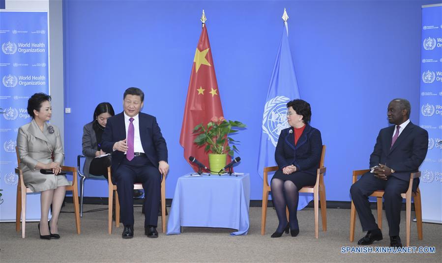 El presidente de China de visita en Suiza, Xi Jinping, se reúne con la directora general de la OMS, Margaret Chan. (Xinhua/Wu Xiaoling)