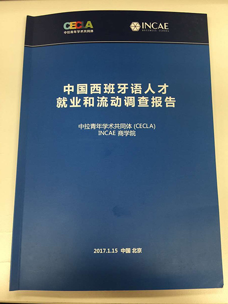 Beijing, 24/01/2017 (El Pueblo en Línea) -Recientemente, el informe sobre empleo y movimiento de profesionales que hablan espa?ol en China fue publicado y presentado en Beijing por la Comunidad de Estudios Chinos y Latinoamericanos (CECLA) y la Escuela de Negocios INCAE, con sede en Costa Rica. Este es el primer informe de su tipo en China y tardó más de tres meses en estar listo.