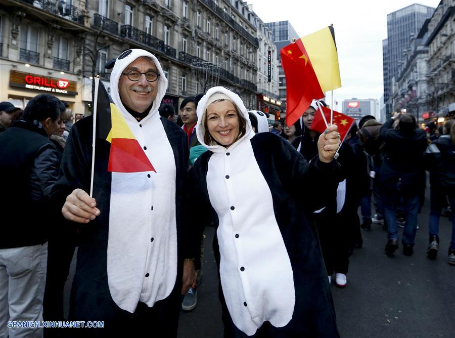 BRUSELAS, enero 28, 2017 (Xinhua) -- Una pareja vestida como pandas gigantes participa durante el Desfile del A?o Nuevo Lunar chino en el centro de Bruselas, Bélgica, el 28 de enero de 2017. (Xinhua/Ye Pingfan)