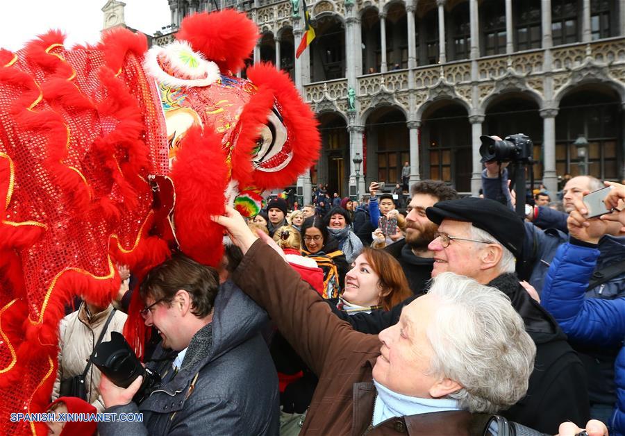 BRUSELAS, enero 28, 2017 (Xinhua) -- Bailarines de la danza del león participan durante el Desfile del A?o Nuevo Lunar chino en el centro de Bruselas, Bélgica, el 28 de enero de 2017. (Xinhua/Gong Bing)