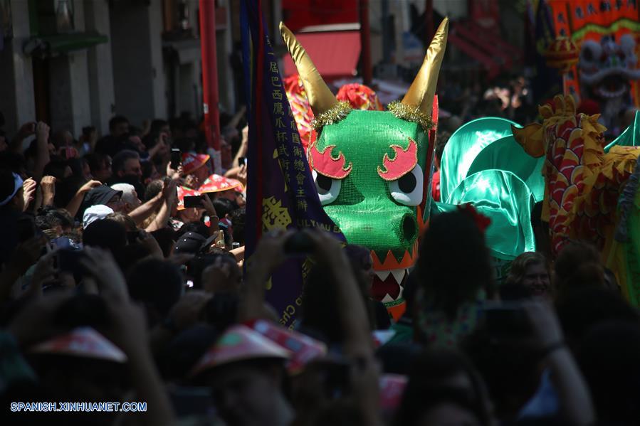 SAO PAULO, enero 28, 2017 (Xinhua) -- Una danza del dragón y del león es interpretada durante las celebraciones del A?o Nuevo Lunar chino, en Sao Paulo, Brasil, el 28 de enero de 2017. El Festival de Primavera o A?o Nuevo Lunar chino, se celebra el 28 de enero este a?o. (Xinhua/Rahel Patrasso)
