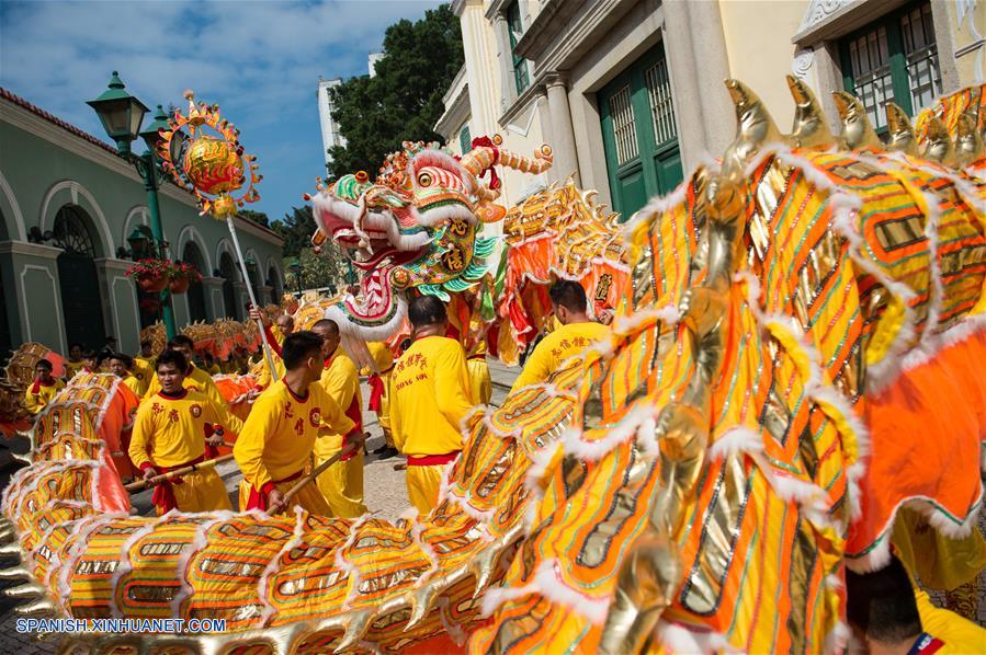 MACAO, enero 28, 2017 (Xinhua) -- Artistas realizan la danza del dragón para celebrar el A?o Nuevo Lunar chino en Macao, en el sur de China, el 28 de enero de 2017. (Xinhua/Cheong Kam Ka)