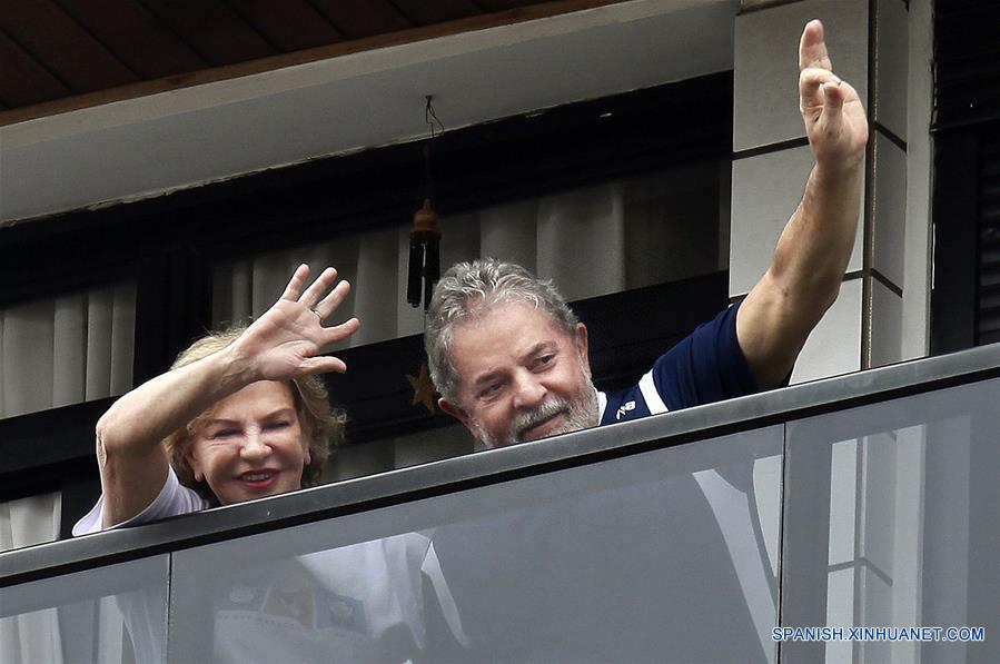Imagen de archivo del 12 de noviembre de 2011 del ex presidente de Brasil, Luiz Inácio Lula da Silva (d), y su esposa Marisa Leticia (i), saludando desde el balcón de su departamento, en Sao Paulo, Brasil. La ex primera dama de Brasil, Marisa Leticia Lula da Silva, dejó de tener flujo cerebral, de acuerdo a un informe divulgado el jueves por el Hospital Sirio-Libanés de Sao Paulo, donde se encuentra internada desde el 24 de enero. El boletín médico informó que un doppler trancraneano identificó la ausencia de flujo sanguíneo cerebral. El ex presidente brasile?o, Luiz Inácio Lula da Silva, informó a través de su cuenta en redes sociales que la familia ya autorizó la donación de órganos. (Xinhua/Daniel Teixeira/Agencia Estado)