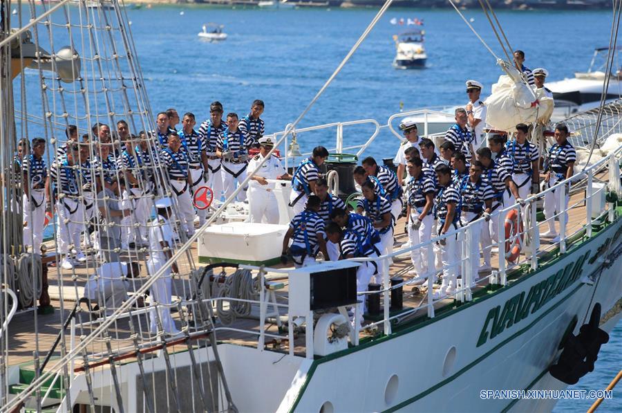 GUERRERO, febrero 6, 2017 (Xinhua) -- Marineros participan durante la ceremonia de despedida del Buque Escuela Cuauhtémoc, en el puerto de Acapulco, en el estado de Guerrero, México, el 6 de febrero de 2017. El buque escuela Cuauhtémoc, un emblemático velero de la Marina-Armada de México, zarpó el lunes del balneario de Acapulco, en el sure?o estado de Guerrero, para recorrer 15 puertos del mundo, entre éstos, Shanghai, China. El buque comenzó en el puerto de Acapulco, en el Pacífico mexicano, un viaje de circunnavegación que lo llevará durante casi 10 meses por 12 países de América, Europa, Africa y Asia, informó la Secretaría de Marina-Armada de México. Los 234 tripulantes, entre mandos, instructores y cadetes, fueron despedidos con una ceremonia en cubierta presidida por el secretario de Marina, Vidal Francisco Soberón, y con la presencia de la primera dama, Angélica Rivera. (Xinhua/David Guzmán)